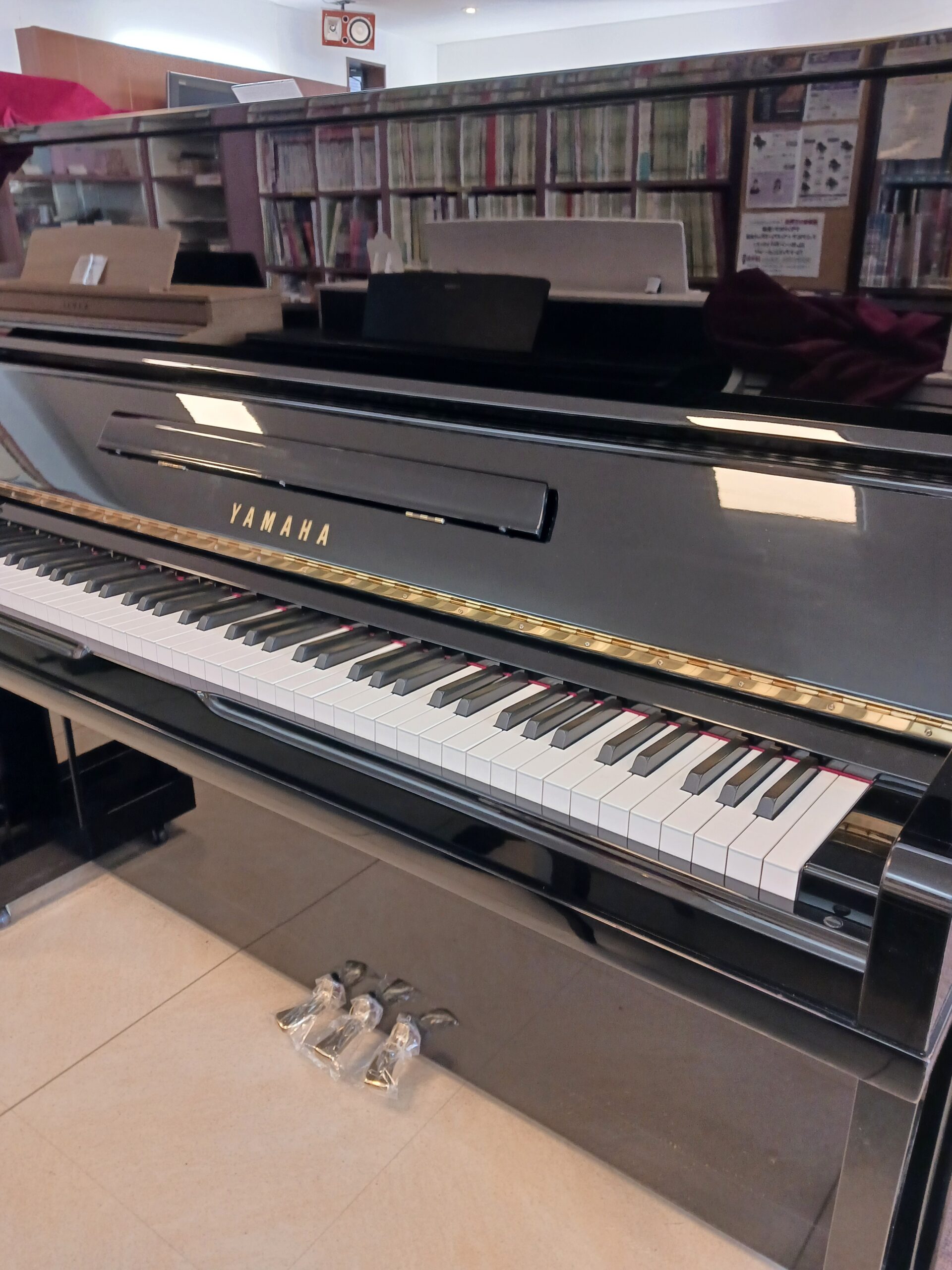 メーカー: ヤマハ 販売価格: 429,000円(税込) 製造番号: 製造年 : 寸法 : 121×150×61 重量 : 210kg 外装 : 黒鏡面艶出し ペダル : 3本 その他 : 高さ121cmのサイズながら、130cmモデルに劣らない音質を目指したスタンダードモデルのアップライトピアノです。低音から次高音部のハンマーにはアンダーフェルトが施されていて、豊かで潤いのある音を響かせてくれます。